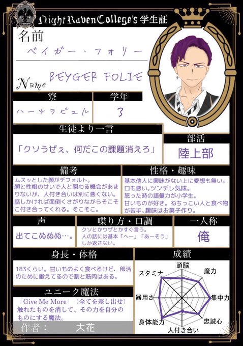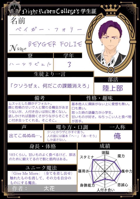 ベイガー・フォリー(ベイ) #twst創作生徒 #twst創作生徒_関係募集 絵文字は🥯 ふぁぼで気になった方お迎えに上がります!