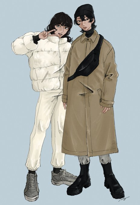良いタグ〜〜🤍🐼🐶🤍 #冬ファッションなイラストがみたい