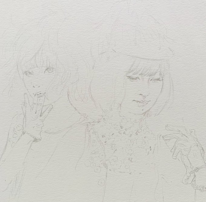 面倒くさがりなので、いきなり水彩紙に描き始め最後の方でア゙ア゙ア゙ア゙ア゙構図がー😭って毎回なる学習能力ゼロの私です。