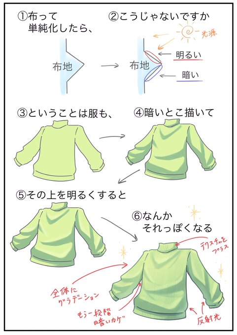 服のシワを描く時に考えてること備忘録(※自己流解釈なので合っているのかは不明(?)) #イラスト #創作