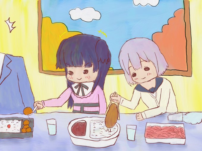 カツカレー弁当を食べる冬優子ちゃん。 プロデューサー の唐揚げももらってご満悦。 #黛冬優子生誕祭2019