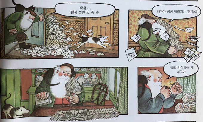 제라르 뒤부아의 그림은 흥미로워요. 색채와 구도의 혼종적 분위기는 분명히 2022년의 감각인데요. 캐릭터의 형태는 백 년 전 사람인 Richard Scarry나 그보다 더 오래된 Beatrix Potter의 정서를 갖고 있어요. 1번이 포터, 2번이 리처드 스캐리, 3번과 4번이 제라르 뒤부아입니다.