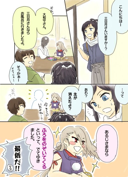 ※黒子状態の女審神者(変態)と肌色注意です。 この後、風呂入り口に『主、立ち入り禁止!』って張り紙される。