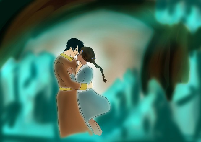 @zkfanworkweek one last #zutarafanart for #ZFAW!! Inspired by all fanfics that diverged from the crystal catacombs. I think most zkstans were converted the moment these two were trapped 🥰 #zutara #avatarfanart #AvatarTheLastAirbender #crystalcatacombs