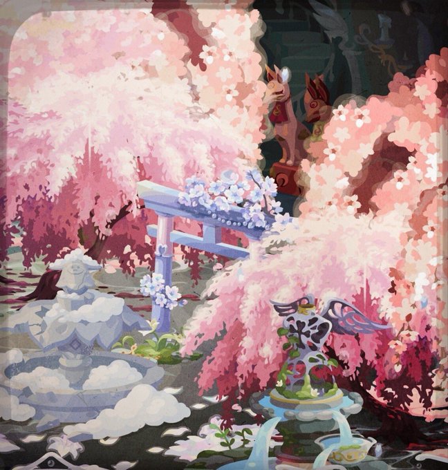 「 彼岸の桜 」 桜ガチャ来ないですね 夜中にカフェの裏部屋に隠り世作りました #ポケコロ