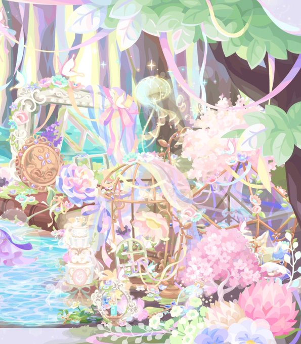 「 魔女の描く森のほとり-interior- 」 もし睡蓮フィルターがお部屋にも使えたらと言う事で 色が変わるので2パターンに分けました #ポケコロ