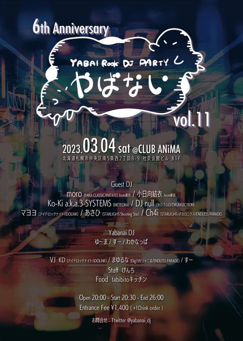 3/5(日)18時~ @ CLUB ANiMA & https://t.co/MGMebpLGtB から配信 で開催🪩