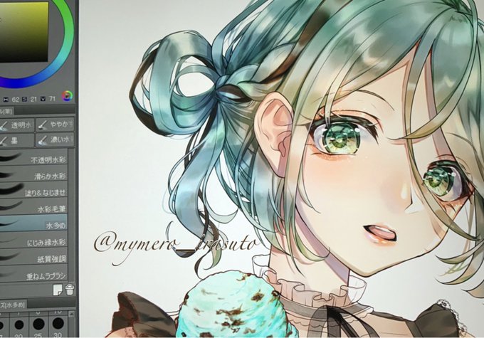 途中までは上手くいってたんだけどな… やっと青系の創作ちゃん描いた