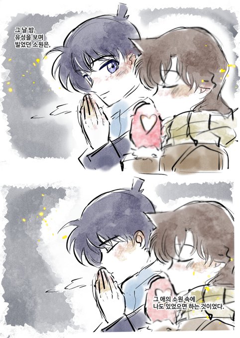 내가 무지 좋아하는 일러ㅜㅜ신란 웃는거 너무 사랑스럽고 색감 미쳤고 란 기모노 너무 잘 어울리고 반묶음 청순하고 체격차이 미쳤고 신이치가 란 손 잡고 있고 신이치 손이 아래에 있는걸 보아 신이치가 먼저 손을 내민걸테고 둘이 사겼고 결혼했고 잤고 렛잇고