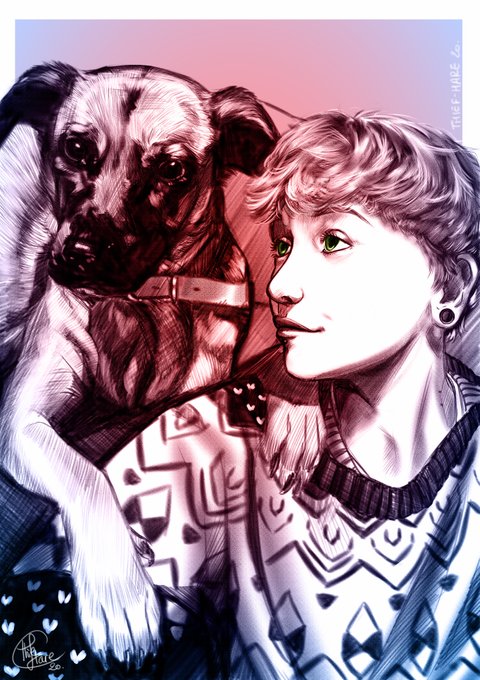 Hello ! Voici la commande passée par Julie Weedzy (merci encore pour l’autorisation ;)). Merci de m’avoir fait confiance ! #portrait #poster #chien #illustration #colours #artoftheday #art #picoftheday #piercing #rock #print #friendship #love