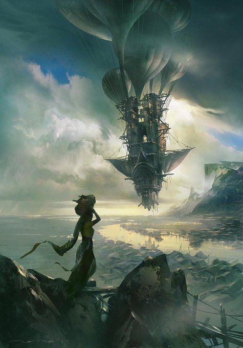 Another amazing fantasy airship, prepping to leave port. Illustration by Robin Tran, http://t.co/3bRRkEFjzG