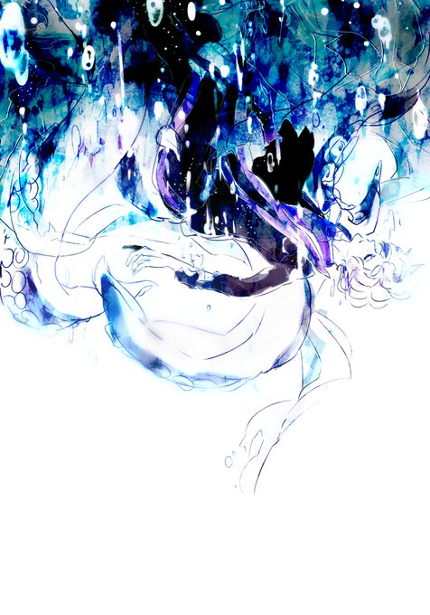 今までのように泳ぐには 些か多くを拾いすぎた #手下沼深夜のお絵描き60分一本勝負 ( @tdknrs1026 ) お題「溺れる」