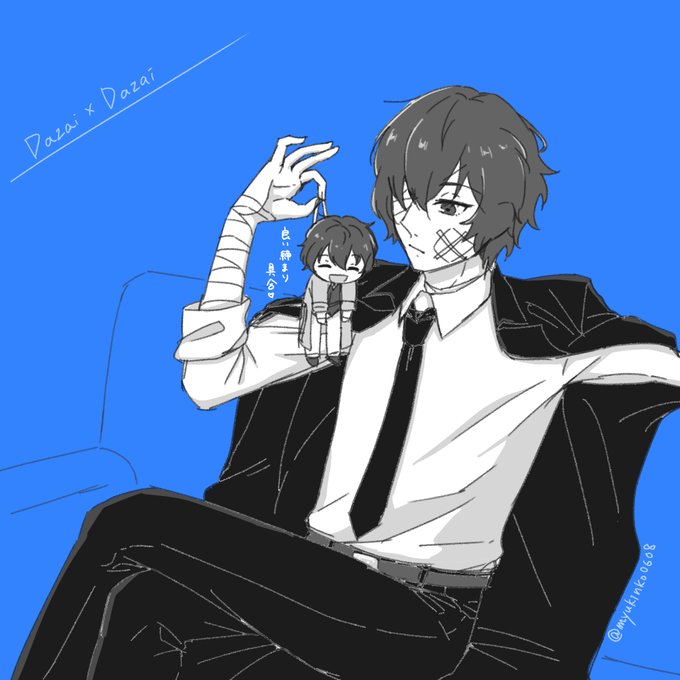 「ほわっほわしたかわいいちびキャラ風のだざいさんと、いけめんなキリッとしただざいさんのコラボが見てみたいです!!」 「みゅきんこさんの描かれただざいさんが見たいです👀」 うん億年ぶりに描きました〜これで合ってるのか…?