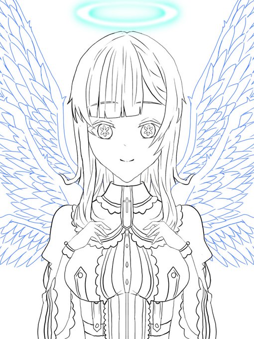 ミーエルガチで描いたの初めてかもしれないな……羽根がクッソ大変だった…