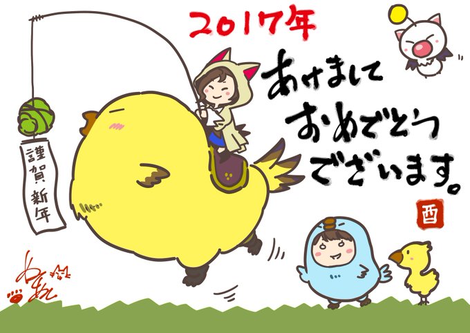 改めまして2017年…新年あけましておめでとうございます 本年もまぁなんか適当に仲良くして下さい(笑 年賀イラストを置いていきます 酉年にちなんででぶチョコボ&クルルちゃんとどう見てもくちぱっちな着ぐるみ南條さんです アイコン用とヘッダー用も雑に作ってみましたよ