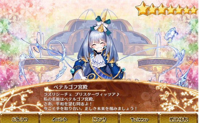 配布と半額 平と水の槌キャラ・・・というか近接自体手薄なので ペテルゴフ滅茶苦茶ありがたい 水MAPはお任せ下さい