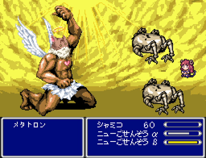 まちカドまぞくRPGをメタトロン戦まで進めました 半分イベント戦ですが生き延びないとゲームオーバー シャミ子1人で戦わなければいけないので辛いです newごせん像を召喚して盾や囮に隙を見て逃げるのが攻略法ですが 負け確かと思ったらメタトロンを倒した人が居るらしい #まちカドまぞく #ウソです