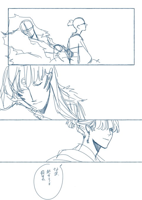 下描きの一部なんだけど 殺生丸が寝てて、そのすぐ近くに神楽がいるってこの構図自分で描いておいてすいません、お気に入りです。