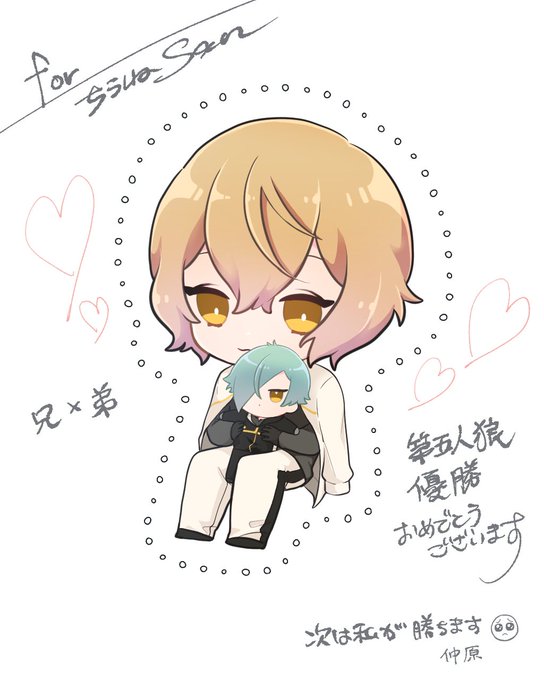 @iskrhaiizo 第五人狼優勝おめでとうございました〜🥳🏆献上品の源氏達です! 智さん(@xso_ru)/にしまさん(@nmsmnm)/鳩麦さん(@htmgtea)/仲原