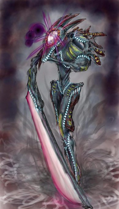 アギさん(@out69_pso )のキルシュちゃん線画お借りしました♪ ネイロ(+D細胞)カラ―に侵食・・・!
