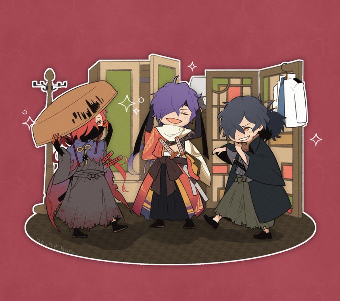 いっぞさんたちその1。今年2月の春コミ発行のさけまよさんと天心さんの御本の表紙に描かせていただきました。その節は楽しい企画に参加させていただいて本当にありがとうございました。