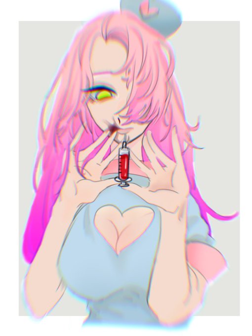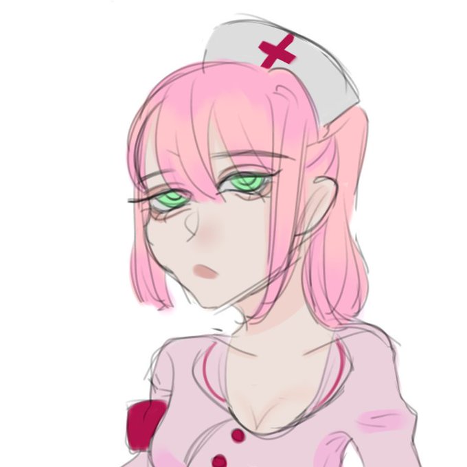 @yumihama_44 ぜひうちのナースを書いてほしいですっ! 髪はピンクで右目を髪で隠してます 目は薄い緑 口に火傷跡があります 服装はナース服ならなんでもいいですっ!