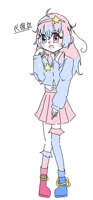 ギャル感ある自宅擬ワプスタです🌟 袖と腰から下のヒラヒラ?は透け素材です。 リュックと靴の構造は謎!!!私にも分からない! 腰のヒラヒラは星型の穴が空いています☆あと分かりにくいけど星のネックレスとピン留め、ピアス(両耳)あります☆