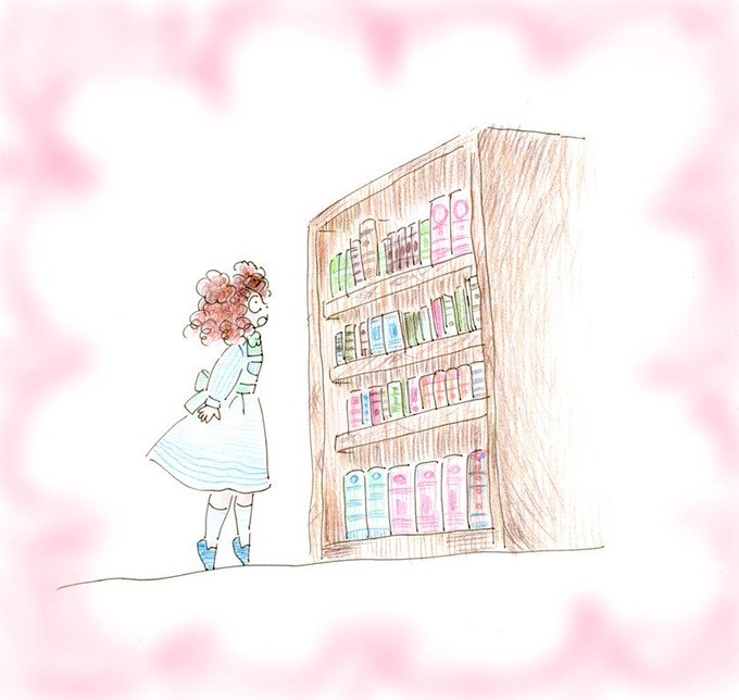 この本棚少女は、奥様の、少女のころです。