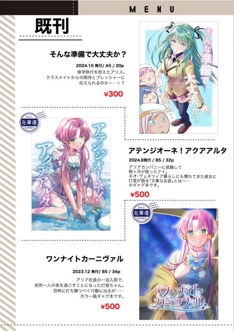 【C105告知】12/29(1日目)東4ホールリ-25a「カリフワーラ」にてARIA新刊ありまぁす!