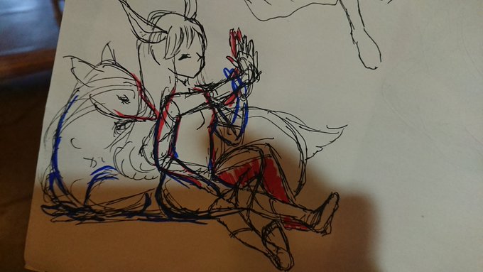 ザックリ色置いた。 ラフ→色置き ビフォーアフター。 ちゃんと明日、綺麗に塗るからねっっっ!!!!