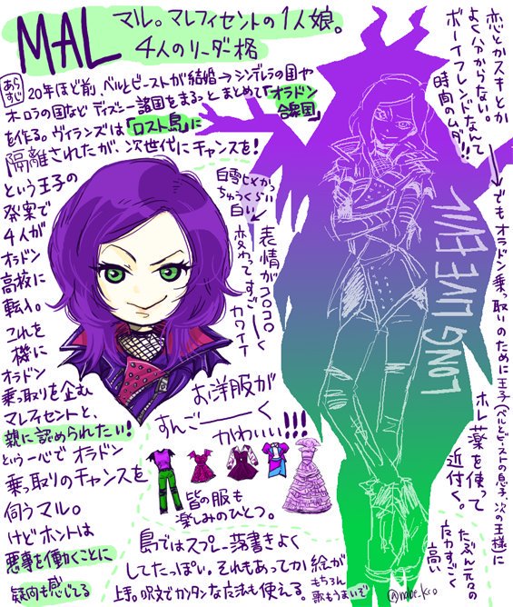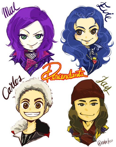 今日DVD発売なので!ディセンダントのメインキャラ4人のプロフィールとかわいいところを!若干ネタバレ含 #fanart #DisneyDescendants #Descendants