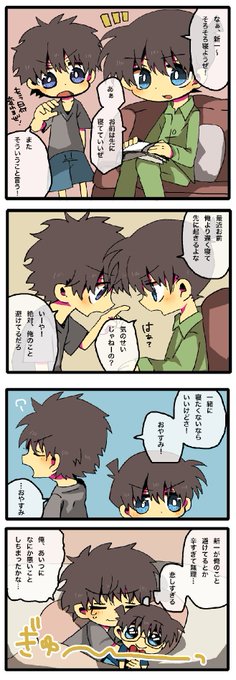 ということで初心に帰って快新bot(@KS_copypaste)さんのネタをちょっと改変してますが描かせていただきました(^▽^)新一はほんとなんか年上キラーというかあざといし、こなんになってからもっとあざとさ(可愛さ)増してそう…