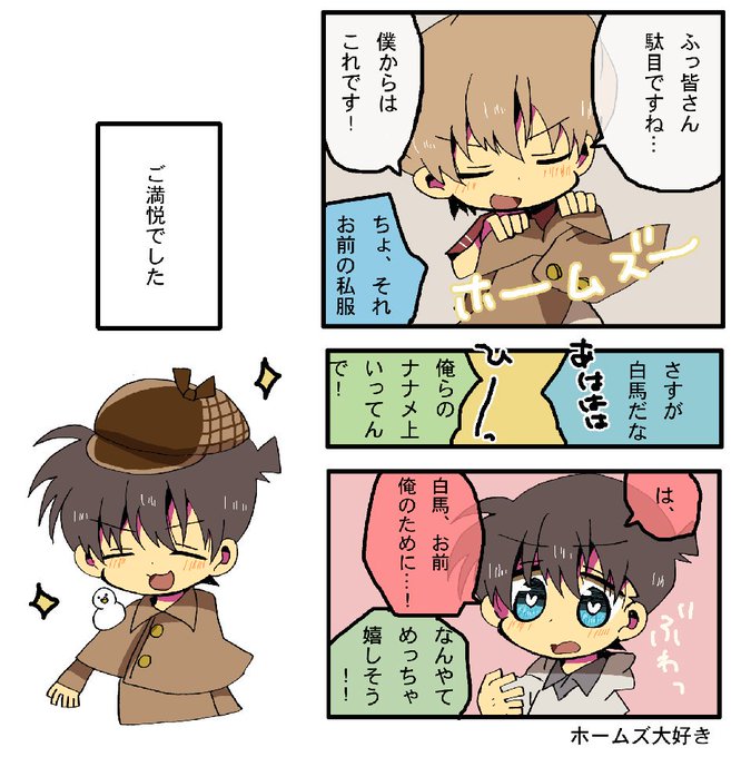 「君たち、彼に対してあたりがきついんじゃないか?彼は小学1年生だよ?」 「お前、騙されとるで!」 「コイツの顔みてみろよ!」 「やだなぁ、僕まだこどもだよ?」 白馬くんだけ知らないのほんと可愛い😇😇😇😇