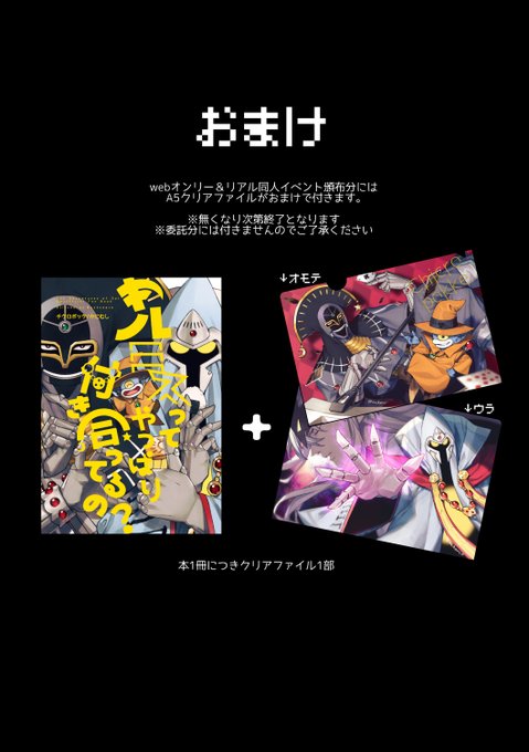 また、webオンリー頒布分とリアルイベント頒布分にはA5クリアファイルが付きます!こちらは無くなり次第終了となります。