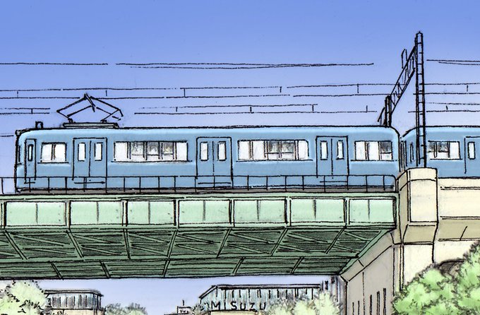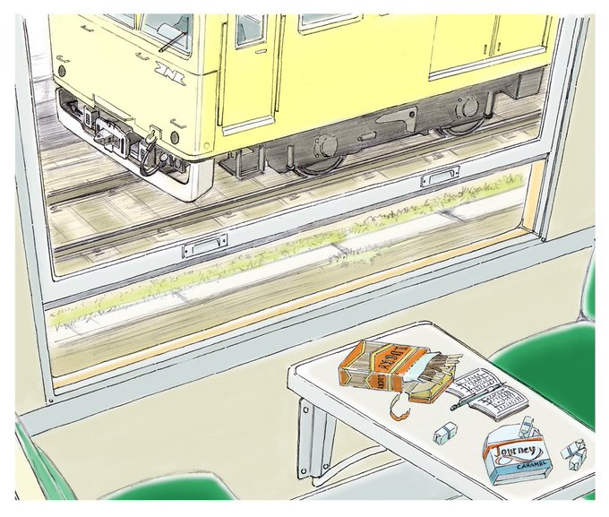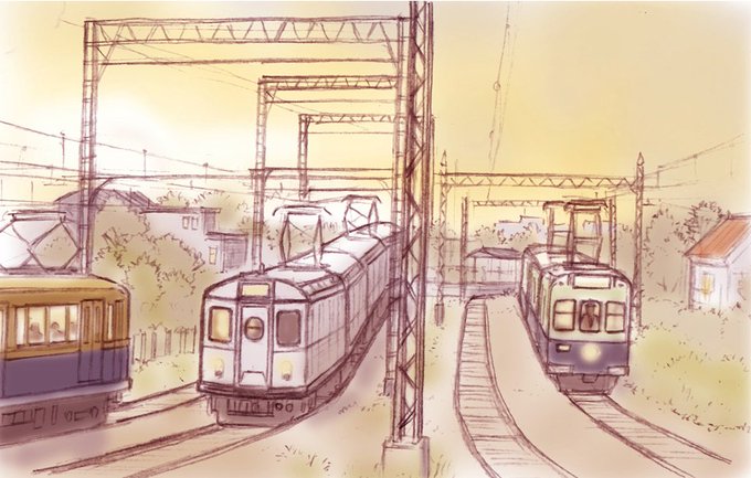 架空鉄道CKK汐津町線イラスト。ジオラマだけでは足りない細かな部分(車内の風景や町の情景など)を絵で補足する、っていう事を思い立ってイラストも描きはじめたのでした。