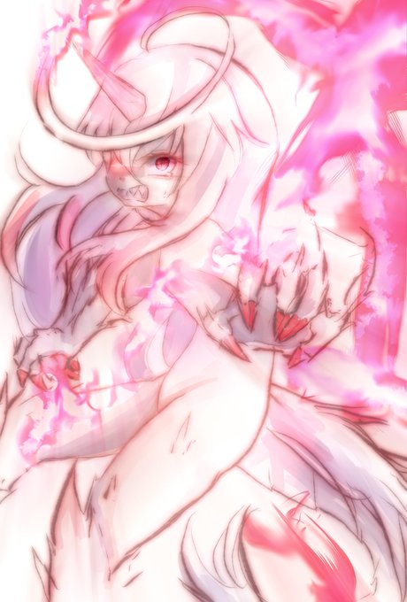ルーチェの力が暴走するの図 魔力が強まると背中に炎の輪っか(赫灼の翼)が出てくる このままだと本当の姿になる #うちの子