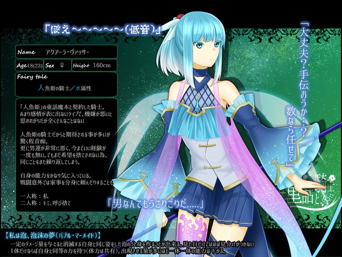 【人魚姫の騎士】アクアーラ デザインと設定は吉村が、線画から着色、投稿は茶葉が代理で行ってます。 #童話と騎士 #童話と騎士_CS