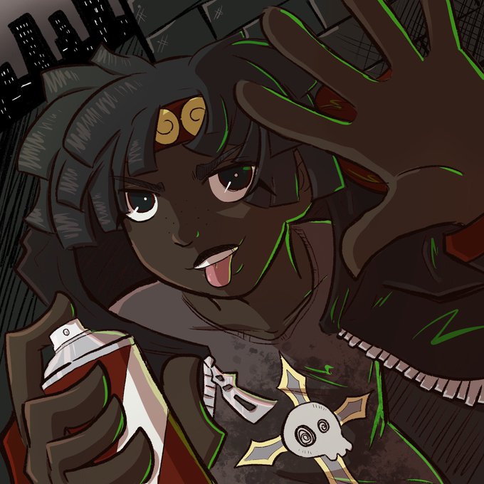 epic splash art i drew for @MemeHyperFixBin (who also colored it in all cute like) of their OC Amrit...and his moth Zoozoo (;