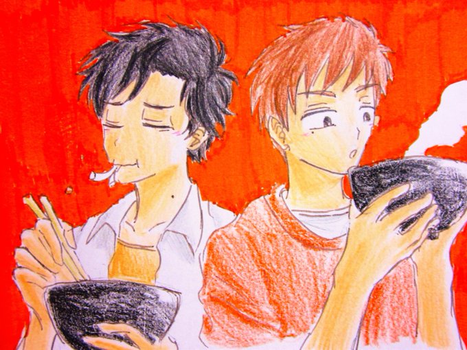 #NACS版深夜の真剣お絵かき60分一本勝負 べたべたの色塗りです… うどん食べてます🍜