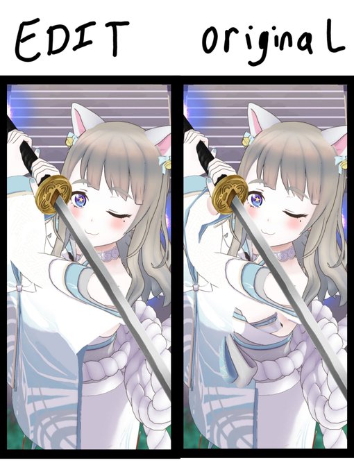 ミュートなのにきてくれてありがとう(;ω;) 素敵なスクショもいっぱいありがとう(*≧∇≦)ノ 刀をもってるとき袖がぐちゃぐちゃになるね ちょっと直してみたけど‥‥