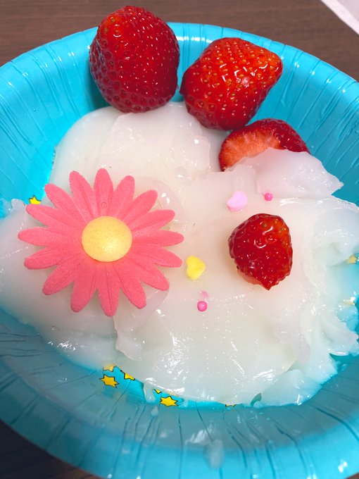 ハッピーバースデー娘💗🎂 今日で11歳🎉 娘が自ら飾り付けたバースデーゼリーと、娘が自らに描いたバースデーイラスト💝 今年も無事過ごせて良かった☺️🎉