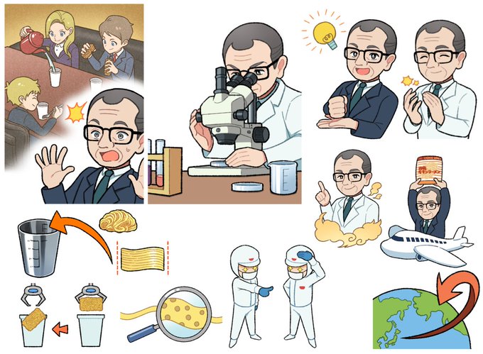【お仕事報告】こども向け冊子にてカップヌードルが出来るまでのイラストを制作いたしました。 インスタントラーメンの生みの親、安藤百福さんのストーリーです🍜