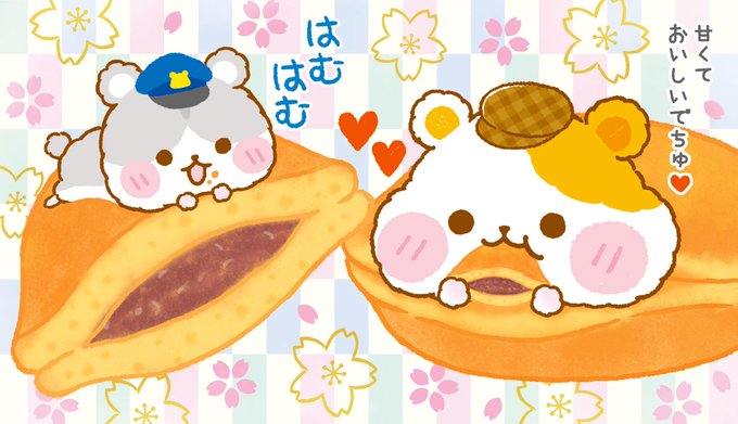 #今日は何の日 #どら焼きの日 #幸せの日 #ハムハムポリス #ハムスター #イラスト好きな人と繋がりたい #絵描きさんと繋がりたい #ゆるいイラスト #イラスト