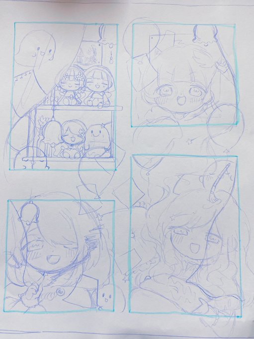 #このタグを見た人はラフ画とその完成絵を見せる ラフ→線画→途中→完成✨ 塗りながらバランスをみて 配色を決める博打タイプです😇👐