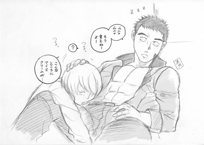 膝枕特集。2枚目、圭ちゃんの膝の上親方気持ち良さそう・・。3枚目はシノヤマ(オルフェンズ)