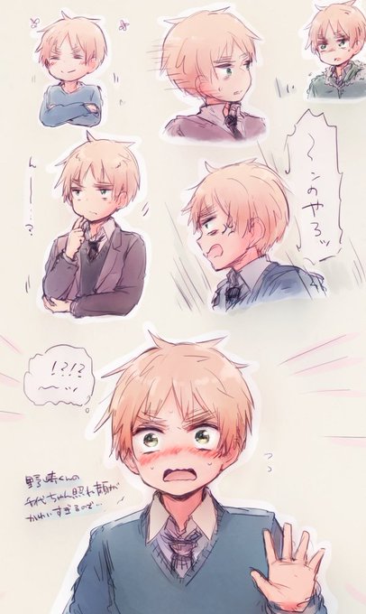 #APHワンドロ版深夜創作60分一本勝負 【@Hetalia_1daw 】 遅刻組 メイプルティーで「木枯らし」 「うわぁ風強いですね」 「はは、お前メイプルの葉っぱくっついてるぞ?…目にゴミがっ」