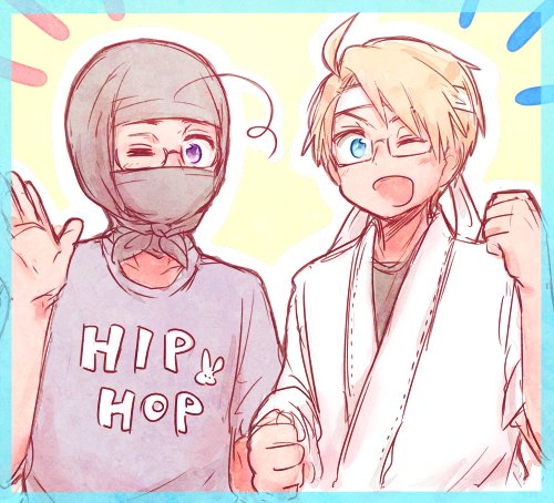 #APHコンビ版深夜のお絵描き60分一本勝負 【@hetaknb 】 ズッ友で「勉強」 学ヘタか学パロ的なお勉強会 「友達だからな!」