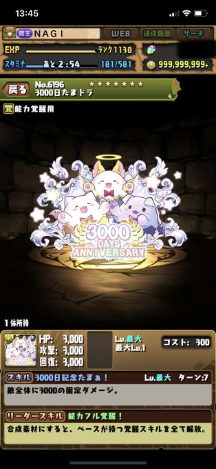 特にあげる画像ないからとりあえず3000日たまドラ🙂 それとBLEACH大好き☠️ #パズドラ #メンテ恒例 #いいねかRTで気になった人フォローする