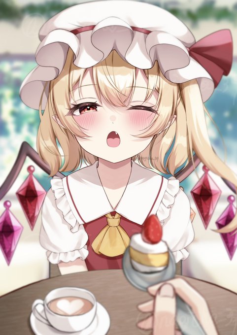 フランちゃんとカフェデート☕️🤍 #フランドール・スカーレット #東方Project #イラスト