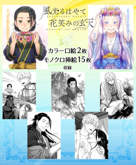 📢2/9くす感‖東3ル01ab 新刊✨ たかのさん@juju_natu_goとの合同誌のお知らせです! 『風光るはやて 花笑みの玄天』 挿絵たっぷりの夏五小説本です 会場限定のしおりは二種の箔押しで煌びやかな仕上がり✨ 通販のお知らせに合わせてまたサンプルアップします よろしくお願いします!